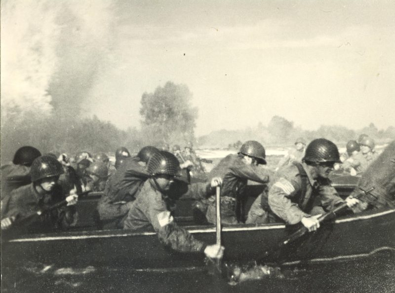 The brave paratroopers from the 504th PIR crossed the fast flowing Waal River in broad daylight under a hailstorm of German bullets, grenades and artillery. When they finally reached the far side they had to cross a large stretch of open ground before they finally reached the dike where the Germans were dug in. Like fearless bloodthirsty beasts they stormed the German positions, slaughtering them all and took the rail bridge and later the road bridge quickly. The message that the rail bridge was captured (around 17:00h) seems never to have reached HQ because nothing was undertaken to exploit this.