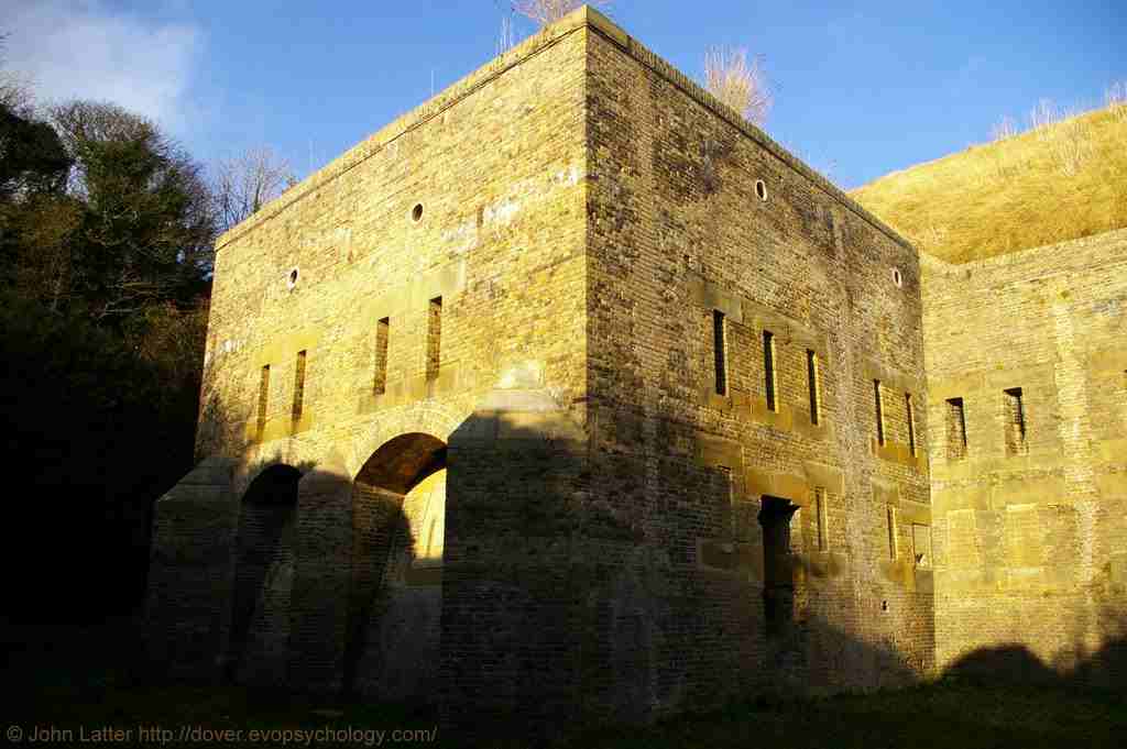 The Grand Shaft is a unique structure in the fortification system known as The Western Heights in Dover, Kent . The shaft is a rare example of a triple spiral staircase, an unbelievable engineering feat. When work began in earnest on the Western Heights in the early 1800s it soon became apparent that rapid troop movement from the cliff top to street level was greatly hindered by the distance that the men would have to cover. If an attacking force had tried to make a landing on the harbour or beach below the troops up on the Heights would have had to make their way along from the Drop Redoubt or Citadel to the original South Entrance (now the site of a Roundabout), along what is now Snargate Street to meet the enemy; a route of almost a mile and a half, when troops were barracked only some 300 feet above sea level! This was hardly an ideal scenario and in 1804 construction started on the Grand Shaft, which had been designed by Lieutenant-Colonel William Twiss. The triple staircase itself is 140ft deep and at the base is a tunnel leading out to a guardroom and from there out into the town. At the top is a further single staircase leading up to the parade ground of the Grand Shaft Barracks. This top staircase is inside what is known as the bowl, and was excavated out of the cliff top. The shaft itself was then dug vertically through the cliff and revetted with brick. Windows line the central shaft to allow light into the staircases, approximately every 30 stairs. As the threat of invasion passed, the Grand Shaft became something of a local attraction, and there are stories of a Mr William Leith of Deal riding his horse up the Grand Shaft for a wager! What is clear is that in the Georgian period, there were no class distinctions attached to the triple staircase. It was simply to ensure rapid troop movement, when men of all ranks would have been deployed down any and all of the staircases in the event of an enemy attack. However, as the Victorian period progressed, class distinction became ever more apparent, and while no definitive documentation exists, the most popular theory states that the staircases were divided into “Officers and their Ladies”, “Sergeants and their Wives” and “Soldiers and their Women”. This has been supported by the fact that the Queen’s Regulations of the time clearly stated that there was to be no off-duty fraternisation between the ranks.