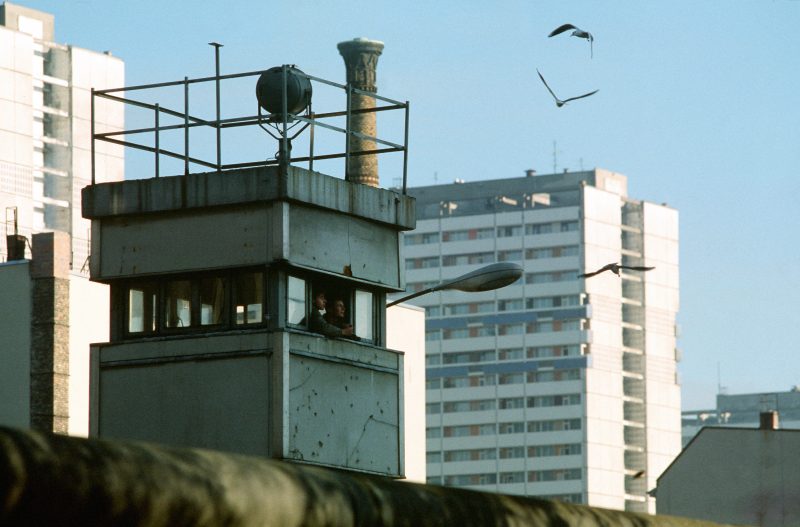 Berlin Wall, East German border guard looks at the Kubat-Dreieck, July 1st 1988 (By Neptuul CC BY-SA 3.0)