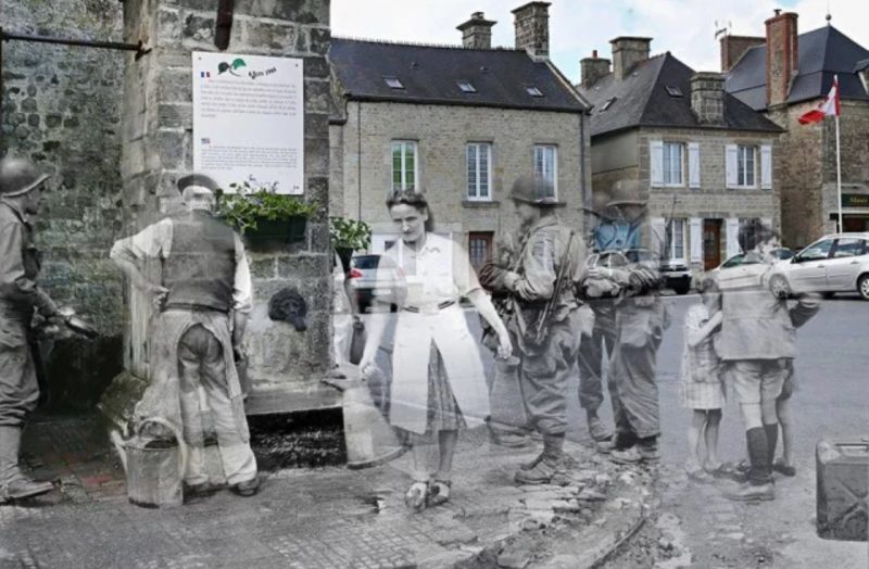 Ghosts of Time: 39 Beautiful Then & Now Pictures of WWII – Including US troops at the water pump in St Marie du Mont 1944 – 2015