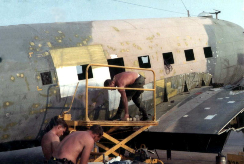 When safely on the ground, Steve and Spicer headed toward their project. It was an AC-47, commonly known as “Spooky.” They had worked on many such aircraft, but this one looked worse than anything they’d ever seen.