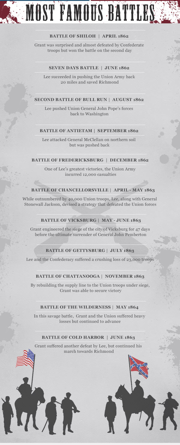 The following infographic, created by Norwich University’s Master of Arts in Military History Program, is a tale of two civil war titans — Robert E. Lee and Ulysses S. Grant.