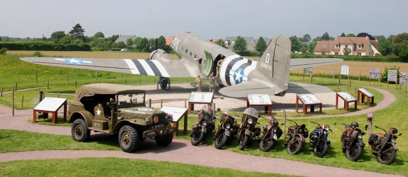 Photo above shows the SNAFU Special from behind at the verge of the Museum’s perimeter. Next to the Harleys and the Dakota, you´ll see the Dodge Command Car in an immaculate state, owned by Robert van Dongen. This same field still houses a number of huge cannons in Bunkers, recessed from the Beach, that could easily cover the Landing Beach “Sword” at some 7-8 miles distance. A British Commando team commanded by Lieutenant Colonel Terence Otway was sent in by Gliders towed by Dakotas on the night before the landings would take place. Their task was simple but very dangerous: this lethal 120 mm Gun Battery had to be knocked out before they could come to action at daybreak. The 9th Parachute Battalion and part of the 3rd Parachute Brigade, along with Sappers and a company of the 1 st Canadian Parachute Battalion took part in the assault on the heavily armored casemates , defended by 100 German soldiers. In a chaos of troops that lost their way to make it to their targets, the Brits and Canadians fought a heroic battle and accomplished their mission right in time. (Photo courtesy Rob Lambij)