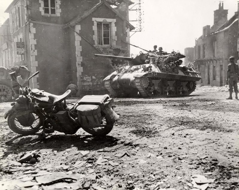 Photo above, showing a Harley in what seems a typical French setting. Right after D-Day , the rapid Allied advance from the 5 Landing Beaches found major resistance in the cities like Caen and Carentan. In Caen, tanks were engaged in fierce battles that finally destroyed 30 % of the city. The motorcycle riders were there for leading the convoys, traffic control, and direction finders in totally annihilated city-centers which left no clues for orientation. The WLA and its Indian competitors went to numerous Allied armies under Lend-Lease or direct contracts. These countries included Canada (which received its own distinct Harley-Davidson model, the WLC with the “high” Headlamp), the United Kingdom, Australia, New Zealand, South Africa, India, Polish forces in exile (under both British and Soviet command), France (Third Republic and Free French forces), Brazil, and the Republic of China. All in all, some 88.000 Harley Davidson WLA types were produced during the war years , while the Douglas C-47/ Dakota came to 10.000 aircraft produced in that war.