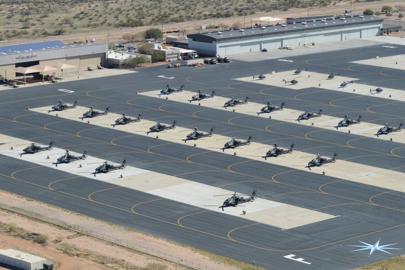 Visible in this shot of Silverbell AHP are six OH-58A Kiowa & nineteen AH-64D Apache gunships. Silverbell Army Heliport, Pinal Air Park, Marana, Arizona. Via Flickr