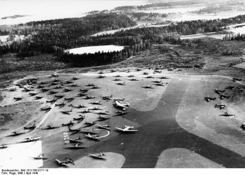Junkers G 38, Junkers Ju 52, Junkers Ju 90, Junkers W 34, Heinkel He 111 on a captured airfield in Norway – April 1940. (Bundesarchiv, Bild 101I-760-0171-19 / Ruge, Willi)