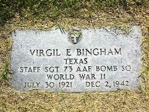 On November 28, Staff Sergeant Virgil E. Bingham, of the 73rd Bomb Squadron, was killed when his personnel transfer flight crashed near Iliamna Lake, Alaska. The final death was Aviation Cadet Charles M. Earle, of Naval Air Training Command. While on a practice flight, he crashed into the Gulf of Mexico on December 24.