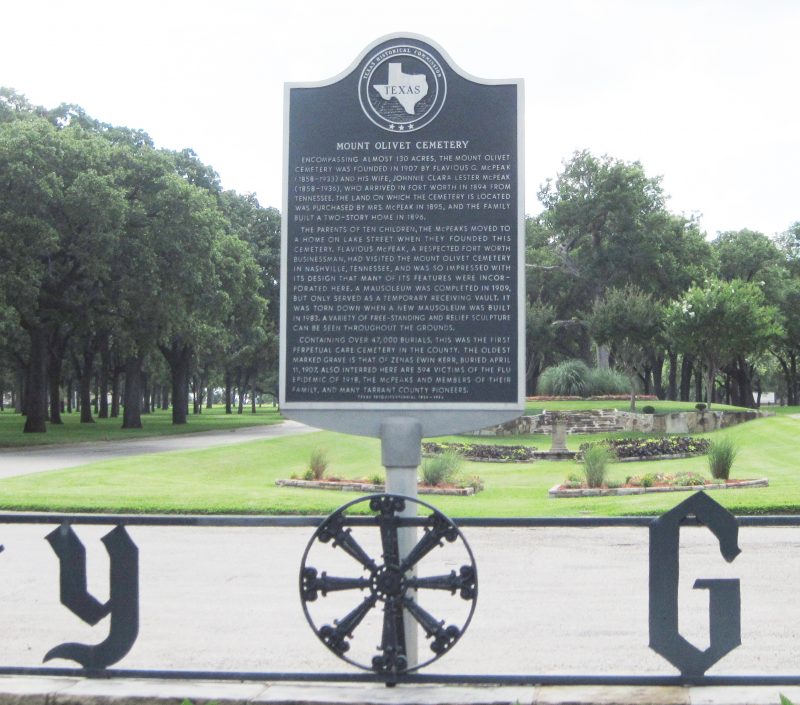 Mount Olivet Cemetery in Fort Worth, Texas, is named after the Jewish cemetery in Israel. “Mount Olivet” means “Mount of Olives”; the Jewish cemetery is of ancient origin, famous for its many biblical associations, and still in use today.