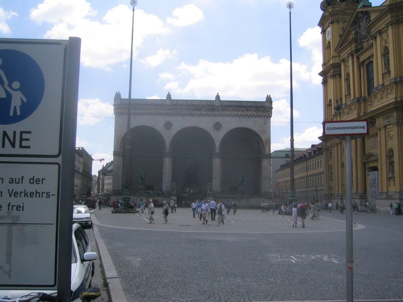 It was at the Feldherrnhalle, or Field Marshals Halls, that on the morning of November 9th, 1923, Adolf Hitler’s “Beer Hall Putsch” came to a bloody end.