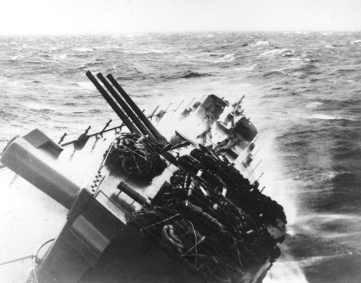Some of these ships experienced sharp rolls of over 70 degrees in the winds that reached 100mph; the Fleet suffered severe damage. Three destroyers (Maddox, Hickox, and Spence) were almost depleted of fuel and so were lighter and more unstable in the rough weather.