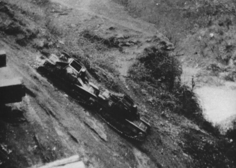 The same pioneer company that has destroyed the bridge constructed again a new, improvised bridge, resting on the skeleton of the old one. The Partisans crossed the river under intense aerial bombardment. The first unit that crossed the bridge immediately got involved in the fight against the Chetniks. The Chetniks completely collapsed and never recovered after this defeat.