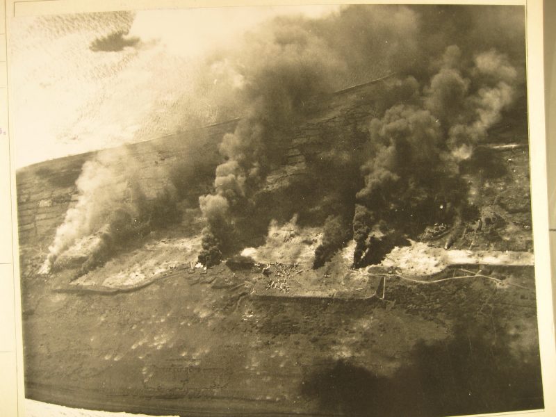 Aerial photo taken by an observation plane from the USS Boston during the July 1944 attack on Iwo Jima.