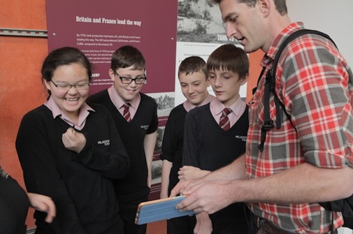 This week I have been to the brilliant Tank Museum in Dorset, UK, home to the world’s best collection of armoured vehicles, to launch their innovative new iPad app – Timeline WW1 Tanks. I had the opportunity to talk to an enthusiastic group of school history students about the role of tanks in the defeat of Germany in WW1 before they took the app out around the museum. It was great to see them using the app right next to the tank exhibits – watching films of the tanks in action and interviews with the Tank Museum’s expert historians.