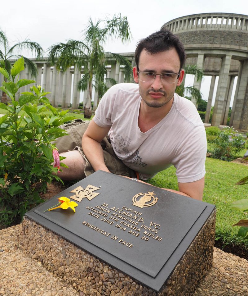 Another couple from England in their thirties were in fact on their honeymoon to Myanmar but through two totally separate connections they were drawn to making a special visit to the cemetery. James and Sarah Madden had managed to track down a grave of a former school pupil who once also attended James’s school and who was awarded a VC for his bravery in June 1944 in Burma at the battle of Pin Hmi Road Bridge. Captain Allmand at one stage and with the utmost gallantry charged on by alone throwing grenades into the enemy gun positions and killing three Japanese himself with his kukrie.