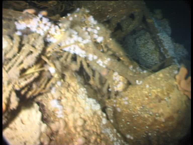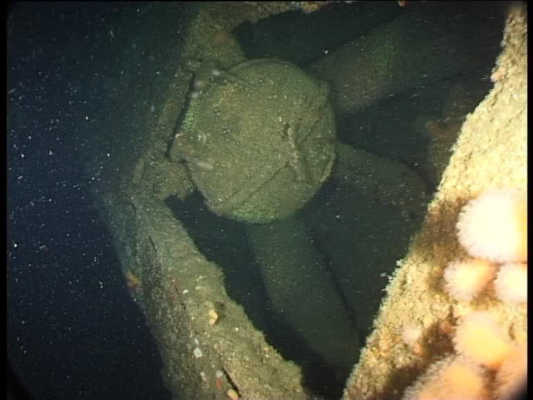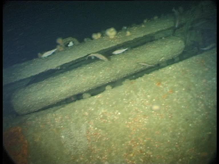 U2506 was lost on tow. The tug which lost it only gave a vague position for the loss, so it took a few dives to find it. ON this dive, as soon as Greg and me arrived we knew we were looking at the unmistakeable wreck of a Type XXI U-boat. This is the torpedo loading hatch (Innes McCartney).