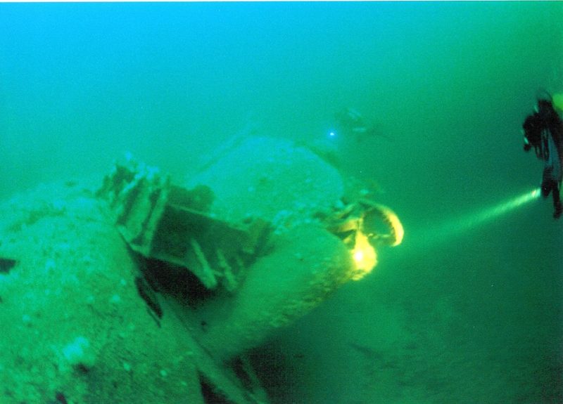 It was a hugely exciting sensation to see the unmistakable streamlined shape of a Type XXI U-boat come into view as I descended the shot line. The really incredible thing about her is that she is completely intact and represents the finest example of the wartime Type XXI which can be seen anywhere. Even the features which we would have expected to have been removed, such as her flak armament are present. Her hull is perfect, as is her conning tower, retractable hydroplanes, periscopes schnorchel etc. We dived this wreck three times and were awestruck by what we had found. I doubt that I’ll ever see a more impressive submarine wreck. From memory, the only visible damage was the rudder, which had fallen off, apart from that, she looked like she was waiting on the bottom for a convoy to appear!!