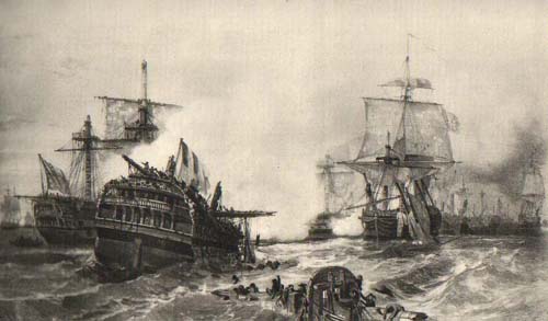The battle descended into a jumbled mess of close-range fire and boarding actions, all sense of formation lost. The HMS Gibraltar, one of the disobedient British ships, fired wildly into the smoke around the French flagship and hit Queen Charlotte.