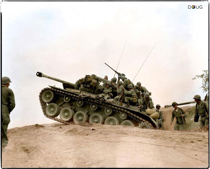 ‘Operation Courageous’ (22-28 March 1951) was a military operation performed by the United States Army during the Korean War designed to trap large numbers of Chinese and North Korean troops between the Han and Imjin Rivers north of Seoul, opposite the South Korean I Corps. The intent of Operation Courageous was for I Corps, which was composed of the U.S. 25th and 3rd Infantry Divisions and the Republic of Korea (ROK) 1st Infantry Division, to advance quickly on the North Korean and Chinese troops and reach the Imjin River with all possible speed. Source: US Army – Department of Defense visual information (DVIC) (Colorised by Jean Marie Gillet from France)
