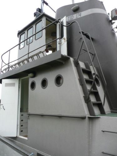 This very special vessel is a small piece of British, French and American maritime history. She was first commissioned for the British Admiralty as TID174 in 1944. She was specifically designed for the D-Day landings, her shallow draft enabling her to work close inshore at Normandy without the risk of running aground. We understand that the Admiralty ordered 180 of these tugs, of which it is believed only two remain afloat. After the war she was sold to the French Admiralty and continued in the same role until, in the 50’s, the American Navy acquired her. She was then converted from steam to diesel and re-fitted with more spacious accommodation.