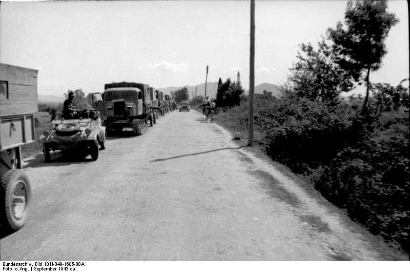 Yugoslavia, September 1943. Motorized troops pose with a section of their vehicles. – By Bundesarchiv