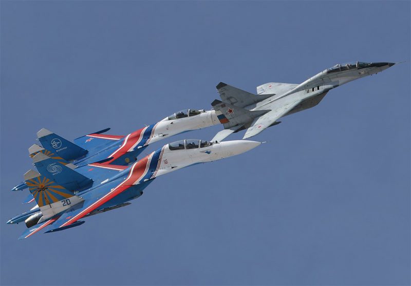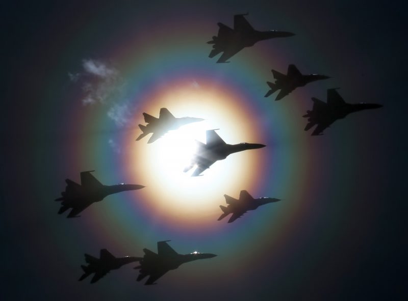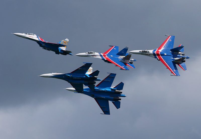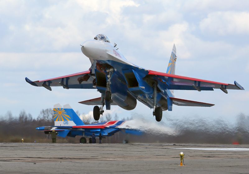 Sukhoi Su-27 of Russian Knights of Russian Airforce at Pushkin airbase (ULLP). Saint-Petersburg, Russia. (Photo by Fyodor Borisov/Transport-Photo Images)