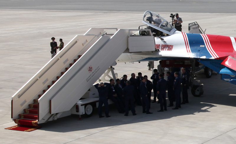It happens that the Su-27 is supplied ladders, complete with red carpet. (Photo by Fyodor Borisov/Transport-Photo Images)