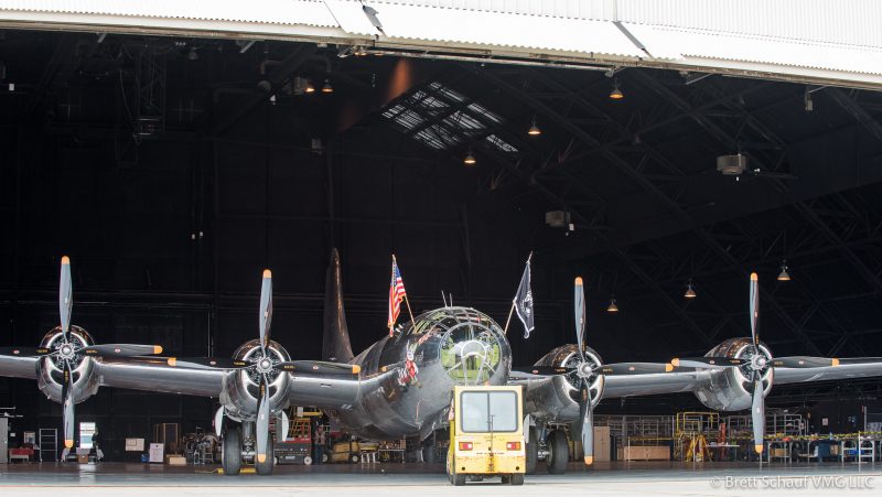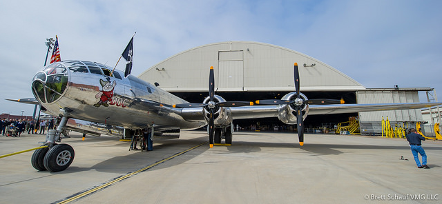 Seventy years ago in 1945, a B-29, one of 1,644 manufactured in Wichita during World War II, rolled off the assembly line at Boeing and was delivered to the U.S. Army Air Forces. Today that same aircraft was rolled out and “delivered” again, in commemoration of its restoration and progress back toward flying condition. More than 200 supporters came to watch it shine as it once again rolled out in the city of its birth.