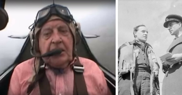 After an absence of more than 60 years, a Royal Air Force fighter pilot who is famous for his flying skills, took to the sky…