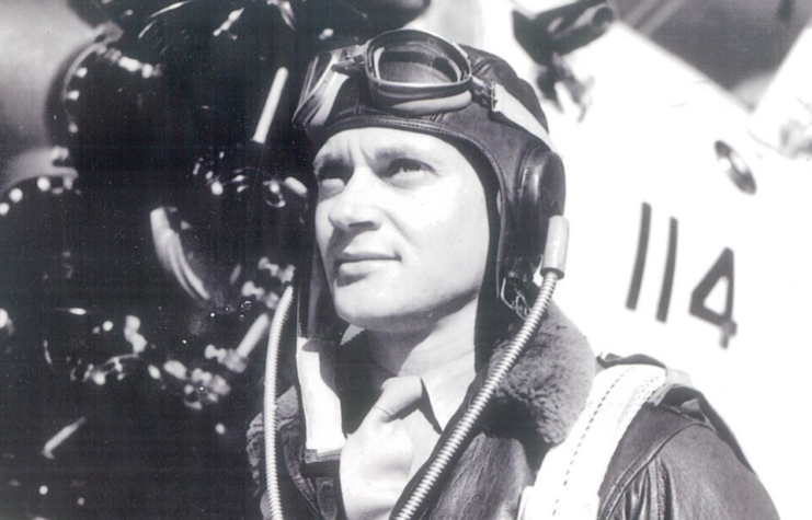 USS Oklahoma on fire in the water + Military portrait of Kenneth E. Doernenburg