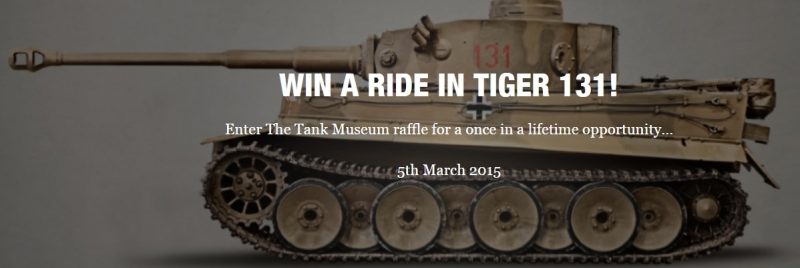 The lucky winner will be able to take a ride in the infamous Tiger 131 around our arena this coming Tiger Day, on 2nd May 2015. 2nd prize is a ride in the Leopard and 3rd prize a ride in the Centurion, each to take place on Tiger Day.