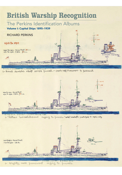 Despite my interest, I had never heard of Richard Perkins, a man who we could accurately describe as a bit of a warship geek. He built up a vast collection of naval photographs, so much so that it didn’t really fit in his house anymore. One way or another the entire collection was deposited with the National Maritime Museum at Greenwich. What is astounding is Mr Perkins had also developed a quite stunning series of large format recognition albums where he made sequences of line drawings of a vast number of Royal Navy ships he had photographs of. He annotated the drawings to reflect refits and the progress of warship technology and weaponry. These albums were done for his own use to help him identify individual ships in photographs. He started work in the late 1920s and had to more or less stop in 1939 when the powers that be took exception to him continuing with his passion. From this distance it seems like a bit of a shame, but their reasons all make sense.
