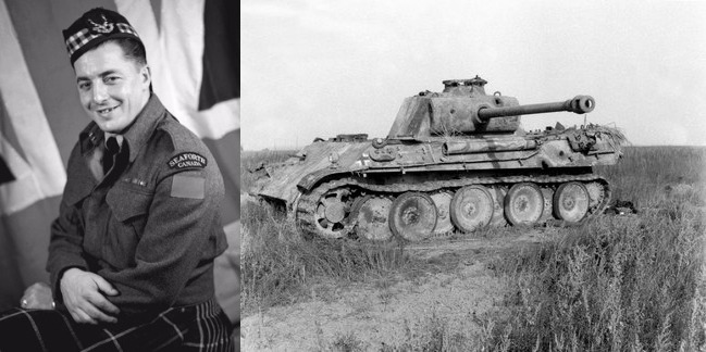 In the early hours of October 22, the Seaforth’s right flank came under attack from three Panther tanks of the German 26th Panzer Division. Smith, armed with a PIAT anti-tank weapon, and some distance away, gathered up his team, crossed an open field and took up a position with a colleague in a ditch alongside the road on which the tanks were advancing. The PIAT was a highly effective “tank-stopper”, but only at close range. To be certain of knocking out the tank, Smith knew he had to be as close as possible to his target.