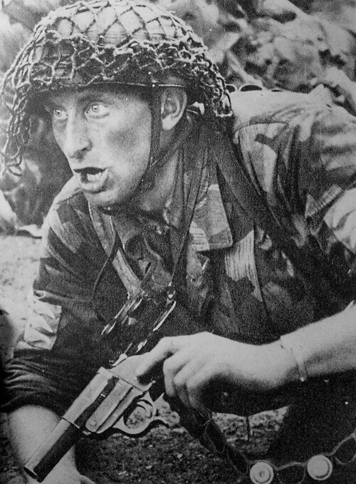 Fallschirmjäger Hauptmann (Paratroop Captain) Walter Gericke (smoking) was originally a policeman who transferred to the Luftwaffe and became one of the first battalion commanders of the Parachute Division.He fought in the Battle of Crete (1941) and won the Knight’s Cross of the Iron Cross.He also fought in Italy and by the war’s end was a lt colonel. Postwar, he was POW of the British.He returned to service in the 50s and commanded
