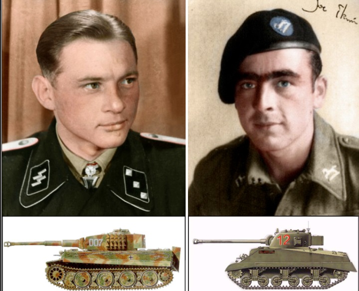 The most accepted opinion is that Wittmann and his crew were killed from a shot from a Sherman Vc Firefly, from 3 Troop, A Squadron, Northamptonshire Yeomanry. This Firefly, the ‘Velikye Luki’, under the command of Sergeant Douglas Gordon was operating with three other Fireflies commanded by Captain Thomas Boardman when they encountered three Tigers. They fired on these Tigers which were all three destroyed in a couple of minutes. The first Tiger was destroyed at 12.40 hours and the second, which returned fire, exploded at 12.47 hours. The third Tiger, probably the ‘007’, was put out of action with two shells, fired by gunner Trooper Joe Ekins from the Firefly of Sergeant Gordon. This was written down in the official daily journal of A Squadron.