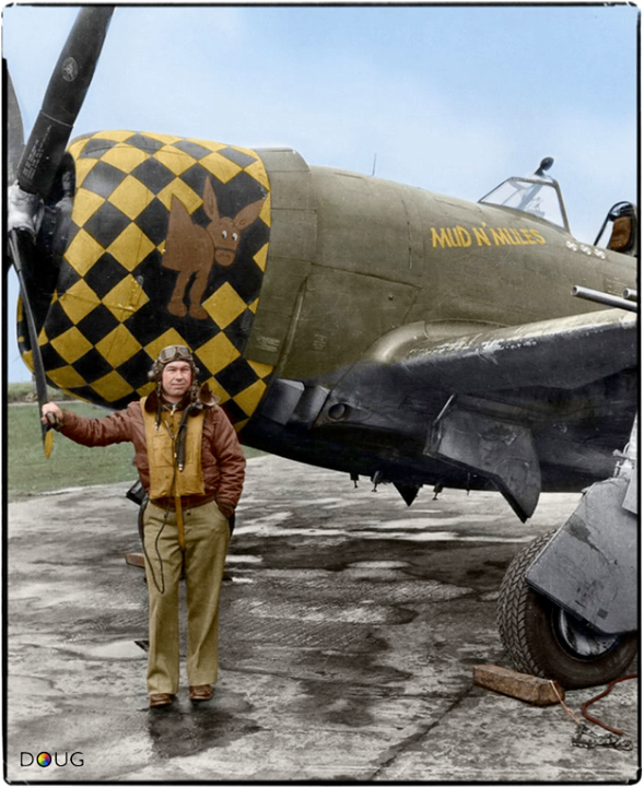 Evan M. ‘Mac’ McCall was the squadron commander and also attached to Patton’s 3rd Armored Division as a jeep-mounted Forward Air Controller on the ground in France.