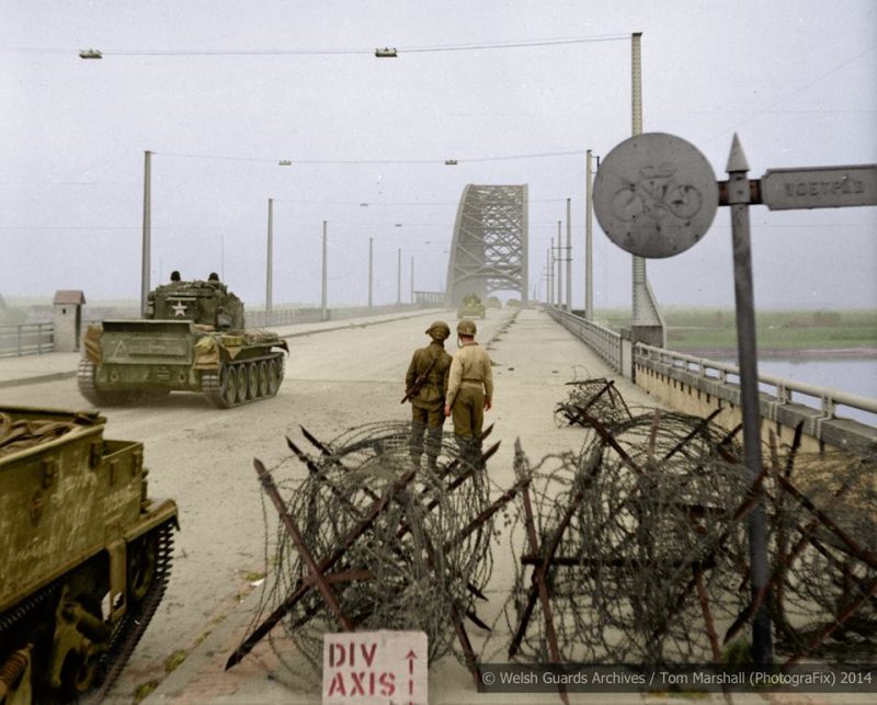 It marked the entry point to the flat piece of land that divided the River Waal from the Lower Rhine, which was called ‘the Island’. The exposed single road north often proved to be a bottleneck as vehicles were vulnerable to enemy fire.