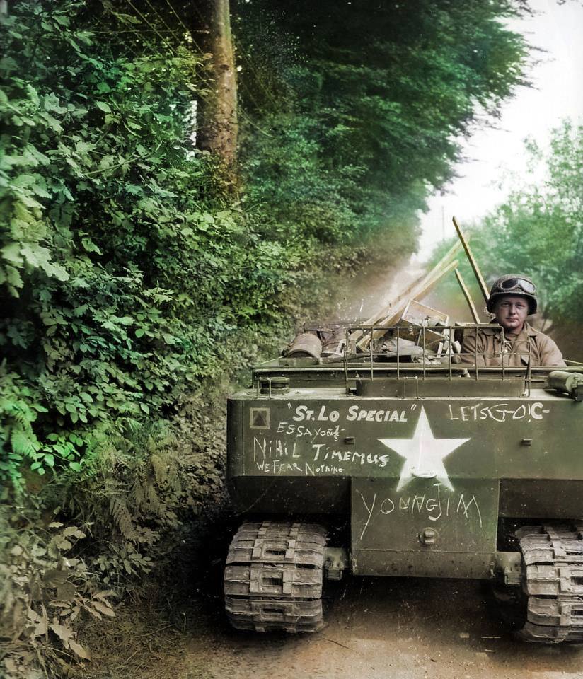 The 121st landed on Omaha Beach on D-Day, fought the hedgerows and entered St. Lo on the 19th of July ’44