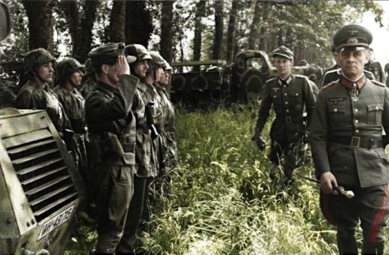 General Feld Marschall Erwin Rommel inspecting the 21.Panzer Division in Normandy on the 30th of May 1944