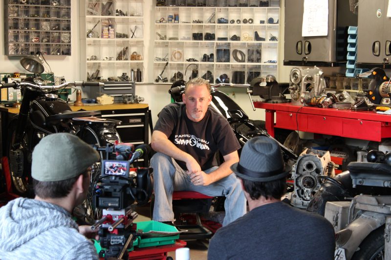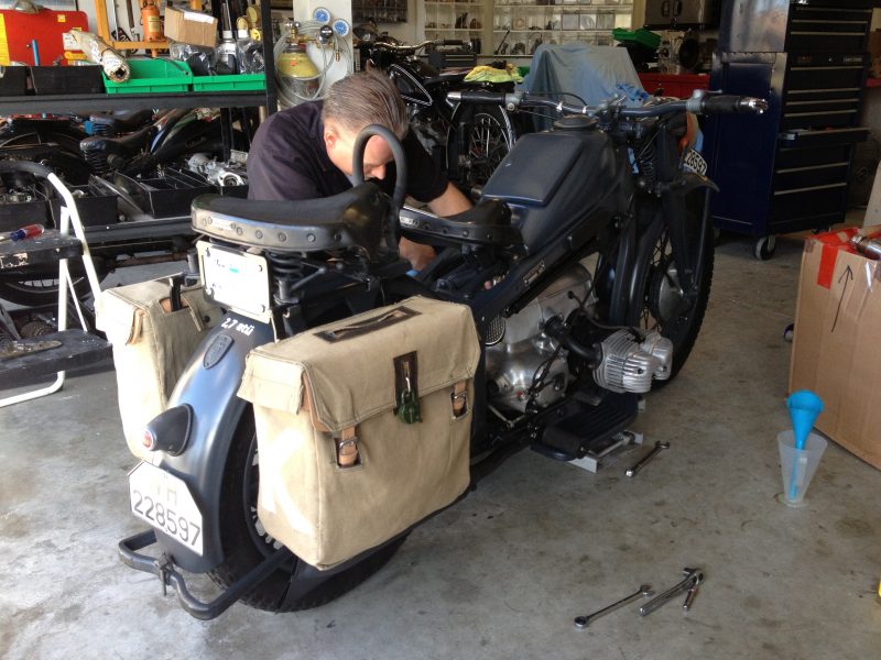 Tucked away in a quiet suburb of Riverside, California is a garage where the ghosts of Third Reich era motorcycles are being brought back to life. On any given day, Mike Dunn, owner of Vintage German Motorcycles, is busy in his shop assembling, restoring and repairing WWII German machines. The workshop has any number of BMW, DKW and Zündapp motorcycles in various stages of restoration or repair. The day of our interview was no different. He greeted me in the shop wearing a black VGM-branded mechanic’s shirt, offering me a hand smudged with engine oil and ancient grime. His workshop is as close to a Wehrmacht motor pool as you will find anywhere in the world. It’s bristling with the motorcycles and sidecars of the German war machine. The walls are covered in period German motorcycle advertisements. Original spare parts are neatly arranged on shelves in every possible space. As we sit down to talk, his face lights up, quickly revealing his passion for resurrecting these bikes. I was thrilled to have the chance to ask him a few questions about his unique shop and what motivates him to do what no one else is doing.