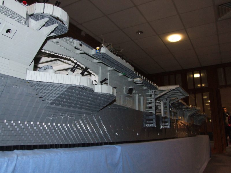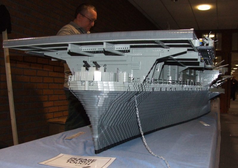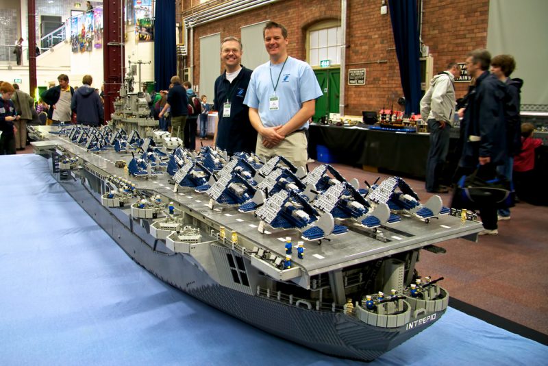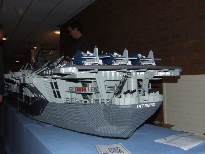 Artist Ed Diment used 250,000 lego bricks to assemble an amazing 22-foot-long, 550 pound model of the USS Intrepid. The model USS Intrepid is nearly 4.5 feet high and 4.5 feet wide, it took three people (with a number of other helpers) over 9 months to build!