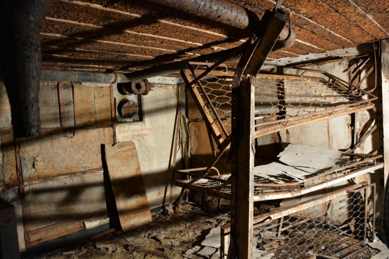Inside, everything remains as it is: nine beds, electric generator, the important telephone system … It would be really a bunker designed originally for the cantonment about 20 soldiers or two battle groups. Its walls and ceiling are not more than 2 meters thickness, just to resist the bombings and maintaining communication between the different positions of the Arcachon Basin.
