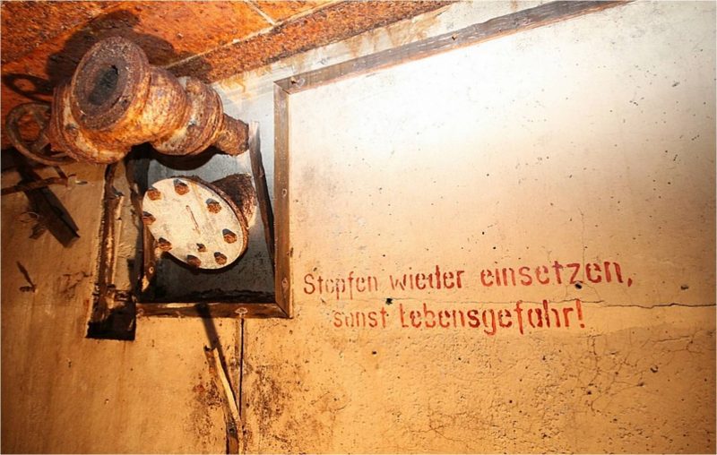 Built by the Germans in 1943, it was buried to protect from the bombardement and direct fire. “It was probably a HQ bunker and central to the defense of the Arcachon basin,” said Marc Mentel, Gramasa’s President. There is a warning message, written in German, indicates you that if you damage equipment or if you bring down, your act will be considered as sabotage.