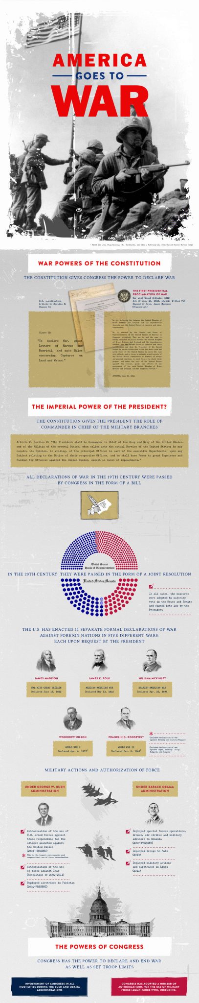 There are many powers within Federal offices, as outlined by the Constitution, which allow the country to officially go to war. Since the birth of the United States, it has been involved in numerous wars, each of which played a pivotal role in determining the direction of the country as a whole.