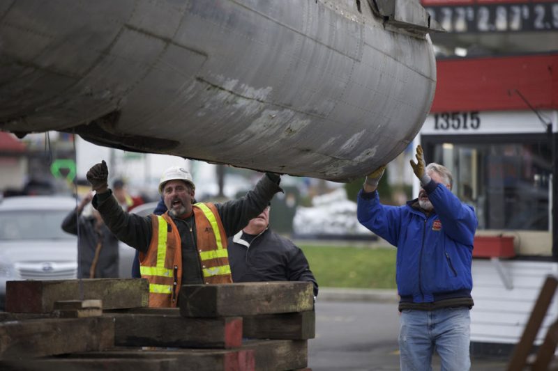 To move the plane, a team of volunteers came together. They had to lift the aircraft in order to load the bomber onto two trucks using a crane for it to be transported to McNary Field in Salem for its restoration.