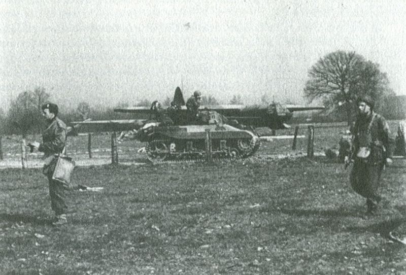 M22 Locust light tank in action during Operation Varsity, March 1945 [via]