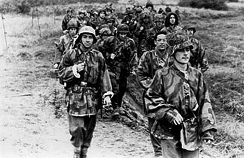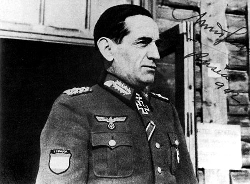 Nazi Germany and Mussolini’s Fascist Italy had helped Franco to win the Spanish Civil War in 1939 and at the end of the war Franco did not bring Spain into the war but he did permit volunteers to sign up to Hitler’s forces, provided they fought only against Russia.
