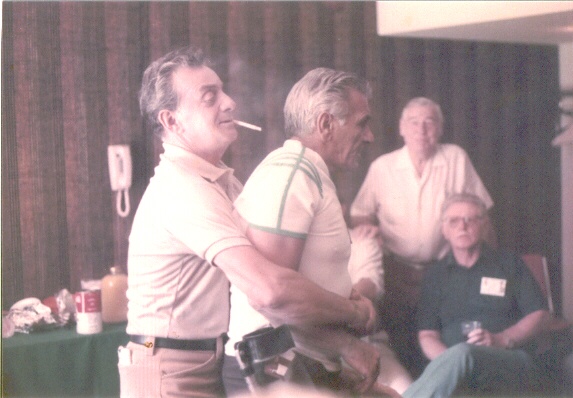 Luz gives Guarnere a big hug at the E Co. reunion in Chicago, 1992. Red Wright and Leo Boyle are in the background. Courtesy of Luz, Jr.