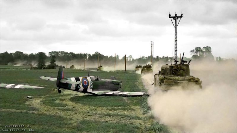The airstrip was built under German fire between 10th – 17th June 1944 and was home to the Hawker Typhoons of 121 Wing, Royal Air Force.