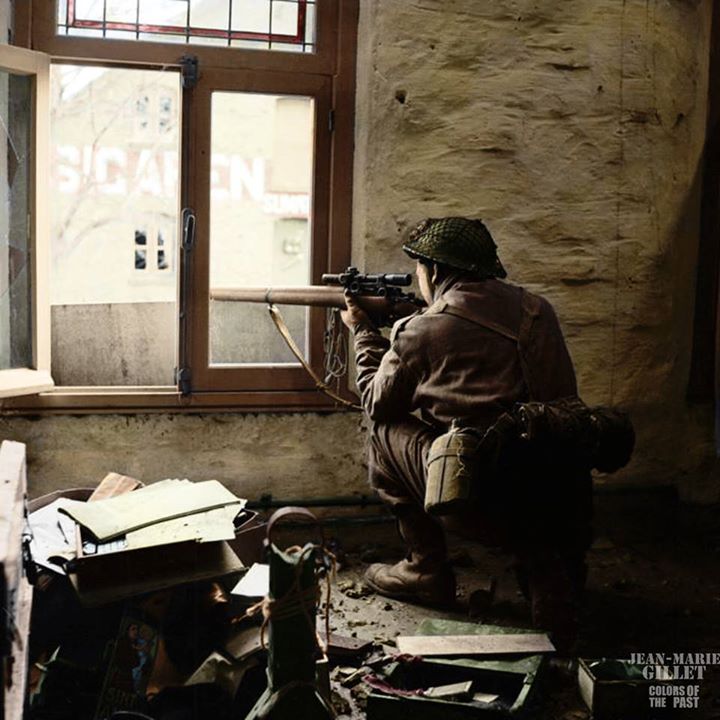 **This is a posed photo** taken after The Black Watch had entered Gennep on the 13th February 1945.