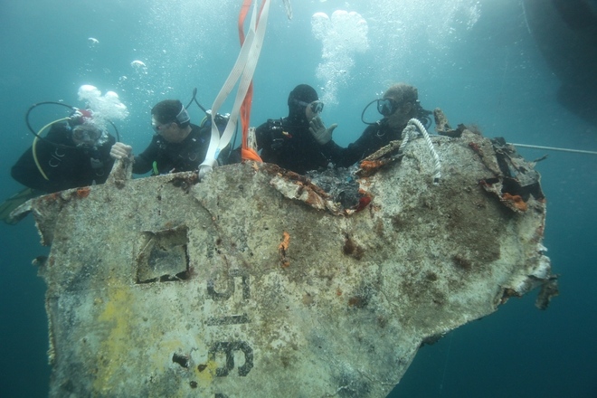 Human remains have been found at the wreckage site (see photos). Souvenir hunters have been seen at this underwater crash site, stripping away parts of the plane, equipment, possessions of the crew, and it is believed that they have also carried off some of the remains of the crew themselves. Like the final resting place of its brother B-24 from the 449th Bomb Group, containing the remains of the Kendall crew, the crash site has yet to be forensically investigated by the appropriate U.S. military personnel, despite ongoing efforts by the families of the lost crew members.